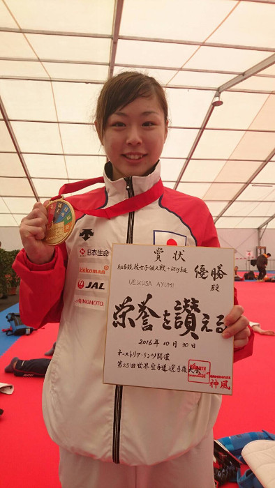 2016年10月25日~30日、オーストリア・リンツにて開催された 第23回世界空手道選手権大会で女子個人組手+68kg級で優勝!